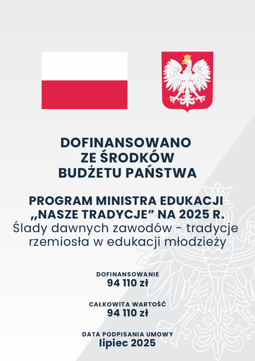 Projekt dofinansowany ze środków budżetu państwa, przyznanych przez Ministra Edukacji w ramach programu Nasze tradycje”.